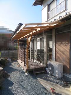 ![]() (樹脂製ウッドデッキ設置、屋根有り) |