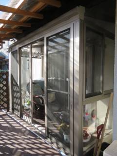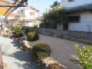 ☆サンルーム設置 ☆樹脂製ウッドデッキ設置 ☆ウッドデッキ上、屋根設置 ☆通路部分、防草シート+砂利 |